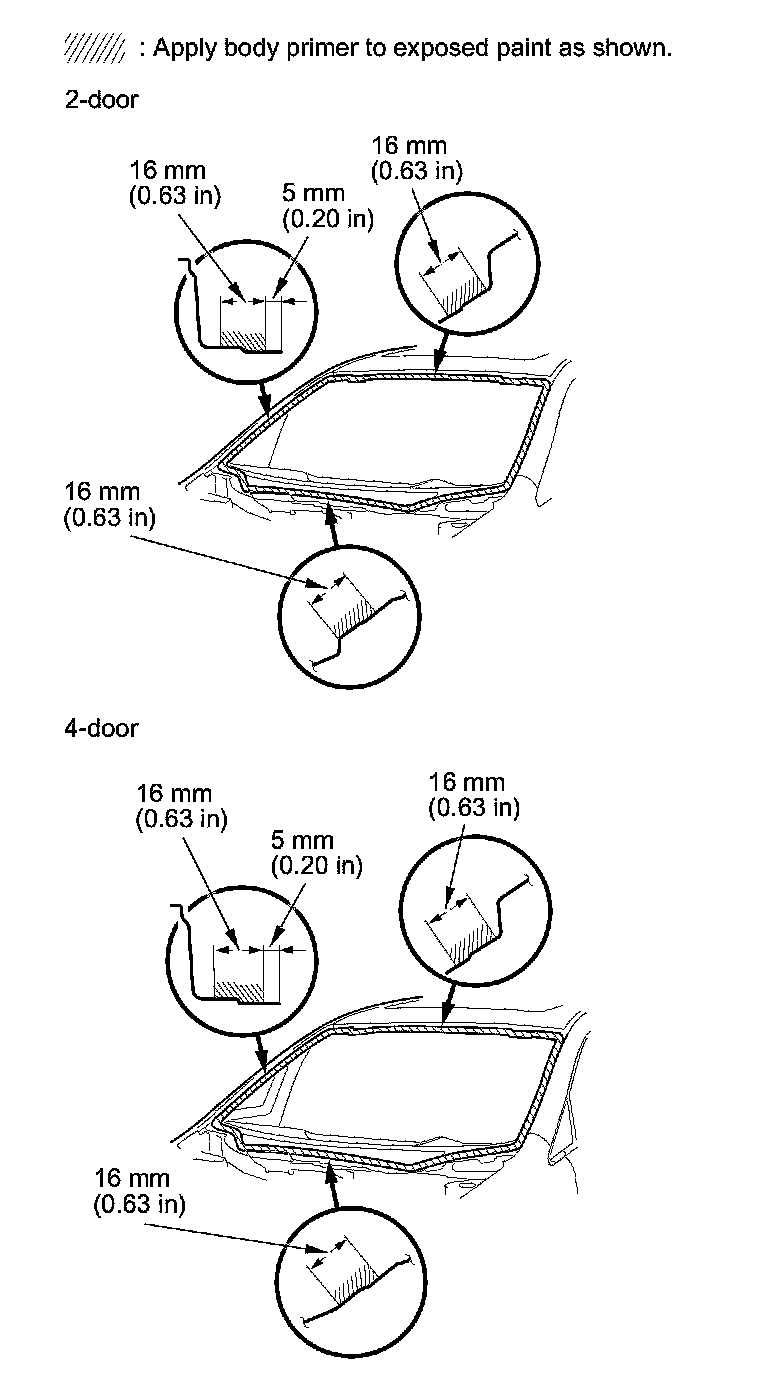 - Do not apply body primer to the windshield, and do not mix up the body and glass primer applicators.