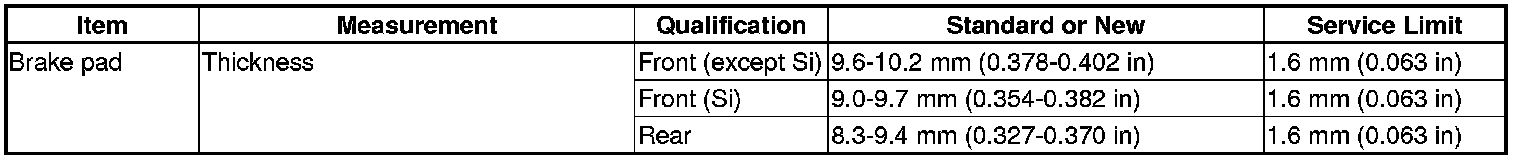 Brake Pad: Specifications