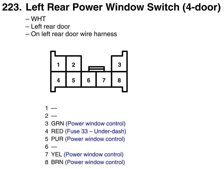 View 223 - Left Rear Power Window Switch Connector View (4-Door)