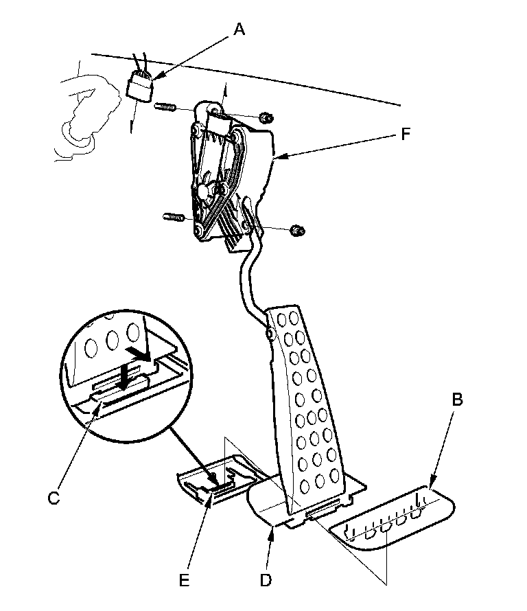 4. Remove the accelerator pedal module (F).