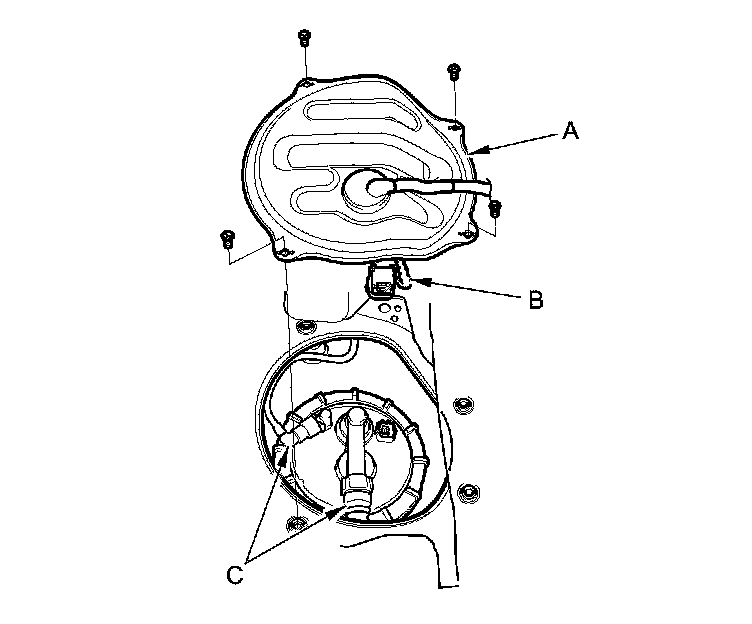 6. Disconnect the quick-connect fittings (C) from the fuel tank unit.