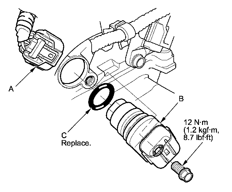 4. Install the parts in the reverse order of removal with a new O-ring (C).