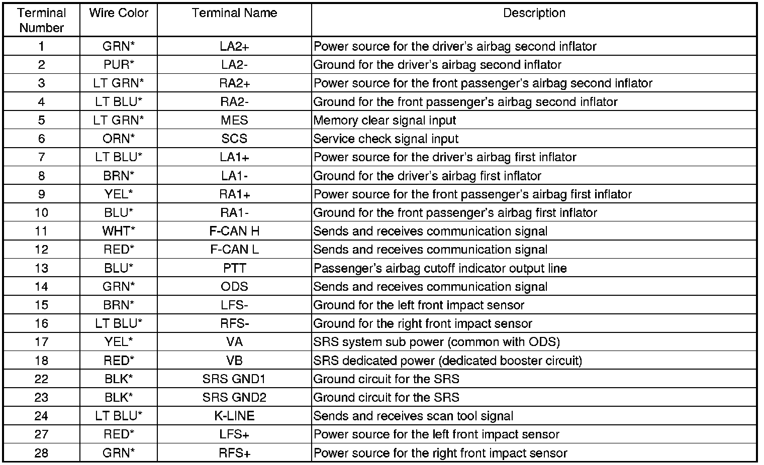 SRS Unit Inputs and Outputs at Connector A (28P)