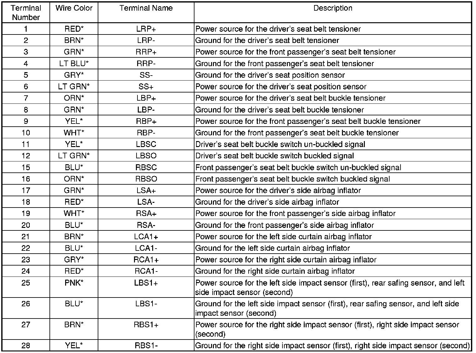 Front Seat Belt Tensioners and Front Seat Belt Buckle Tensioners