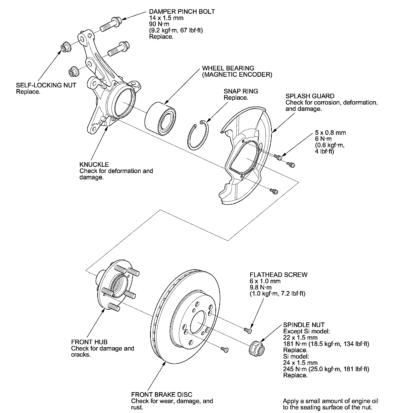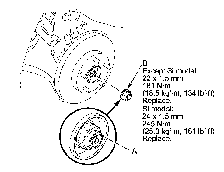 - Before installing the spindle nut, apply a small amount of engine oil to the seating surface of the nut. After tightening, use a drift to stake the spindle nut shoulder against the driveshaft.