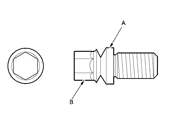 8. Tighten the shear bolts (A) until the hex heads (B) twist off.