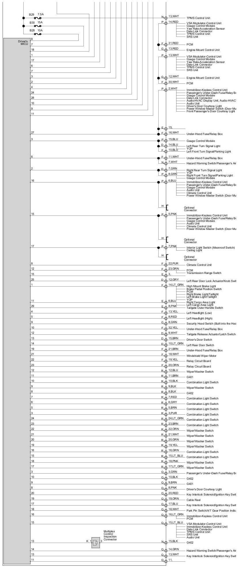 Fuse/Relay Box Diagram - Driver's Under-Dash Fuse/Relay Box