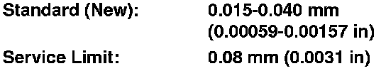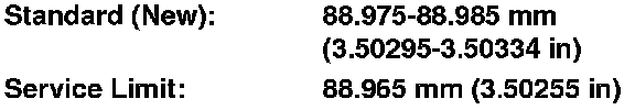 7. Calculate the difference between cylinder bore diameter and the piston diameter. If the clearance is near or exceeds the service limit, inspect the piston and the cylinder bore for excessive wear.