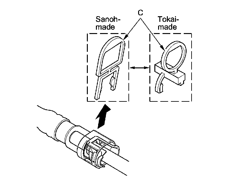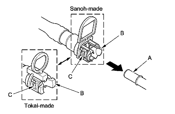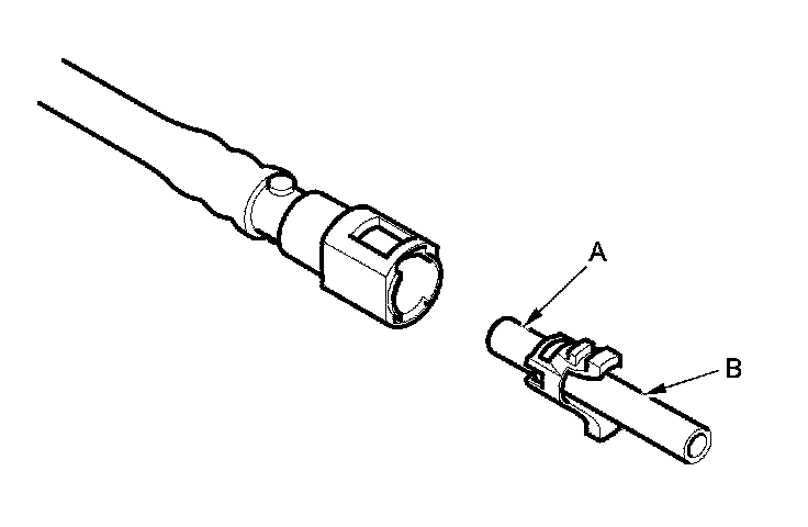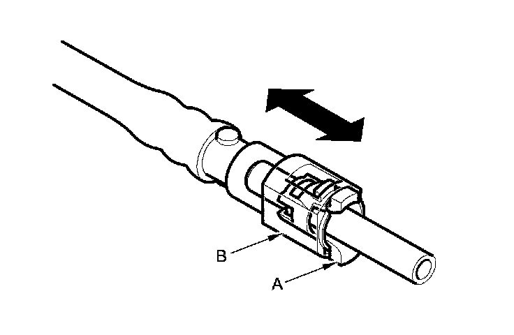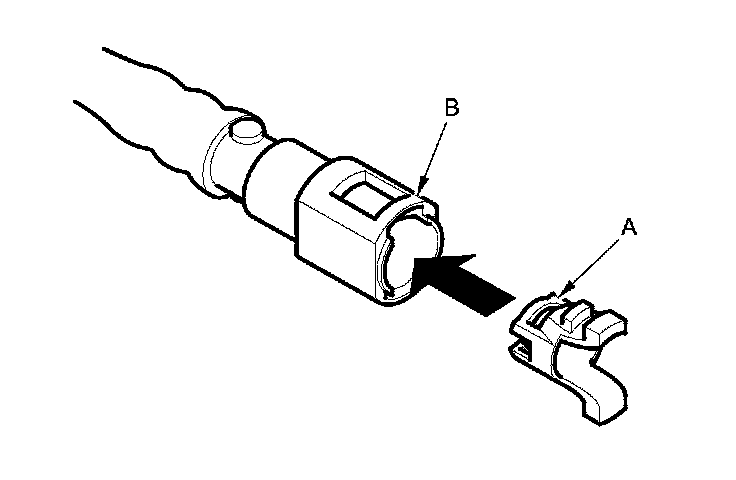 2. Insert a new retainer (A) into the connector (B) if the retainer is damaged, or after: