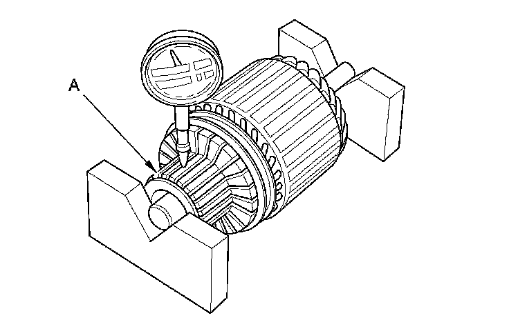 8. Measure the commutator (A) runout: