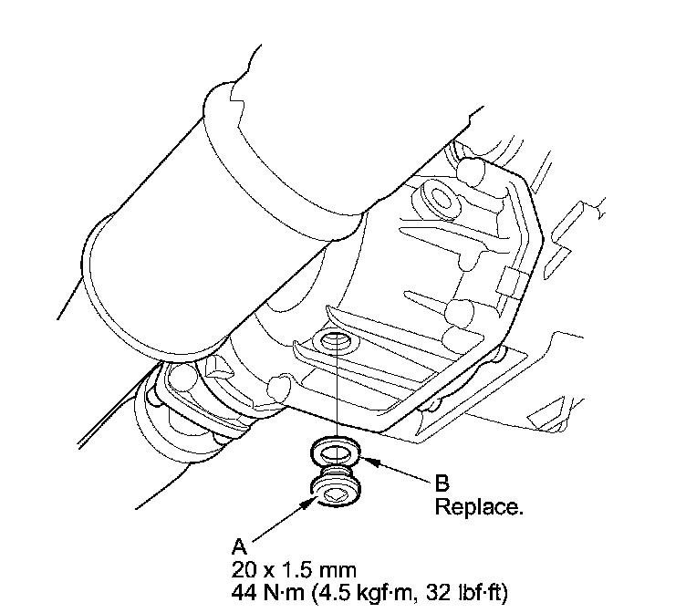 5. Remove the filler plug (A) and the sealing washer (B).
