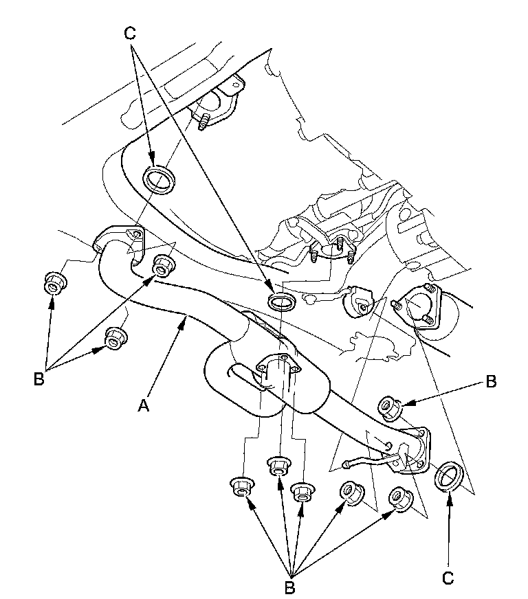 6. Remove exhaust pipe A and the gasket (C).
