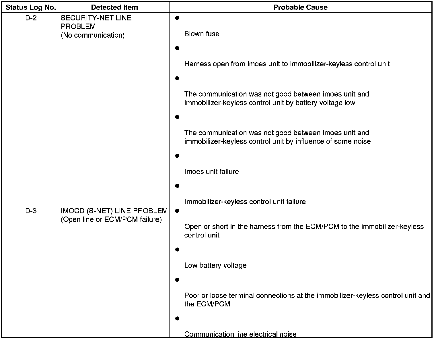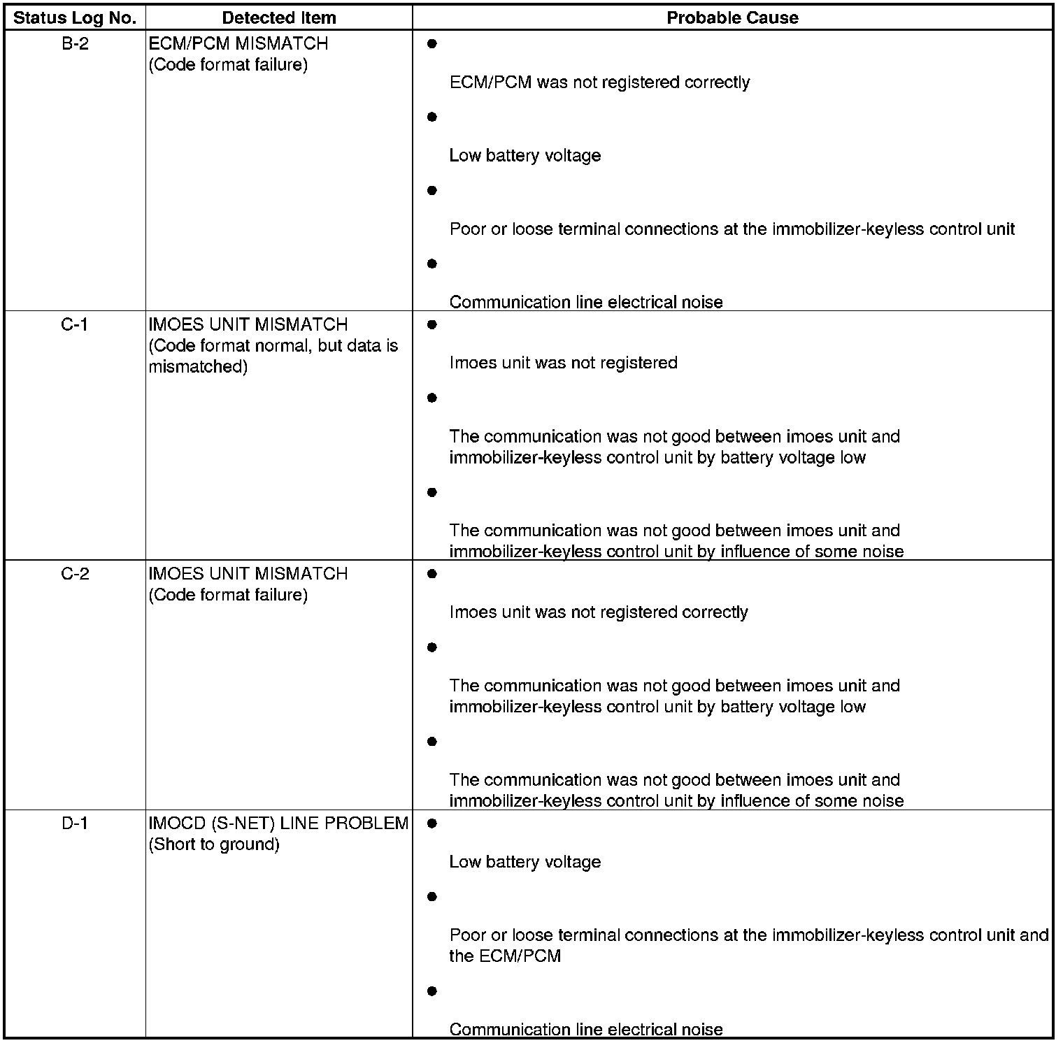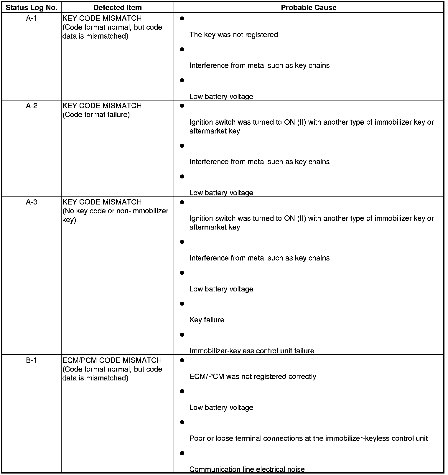 Immobilizer System Status Log