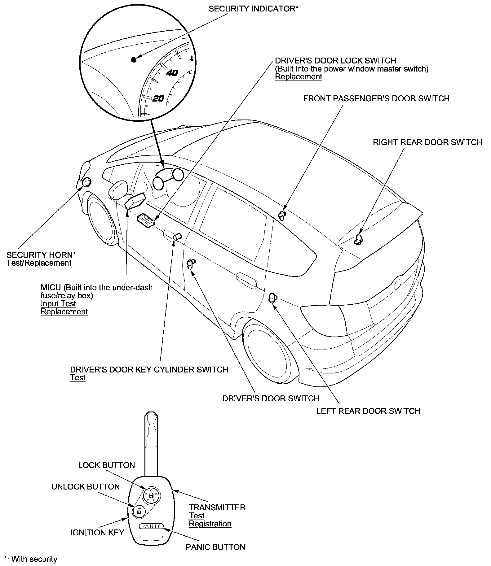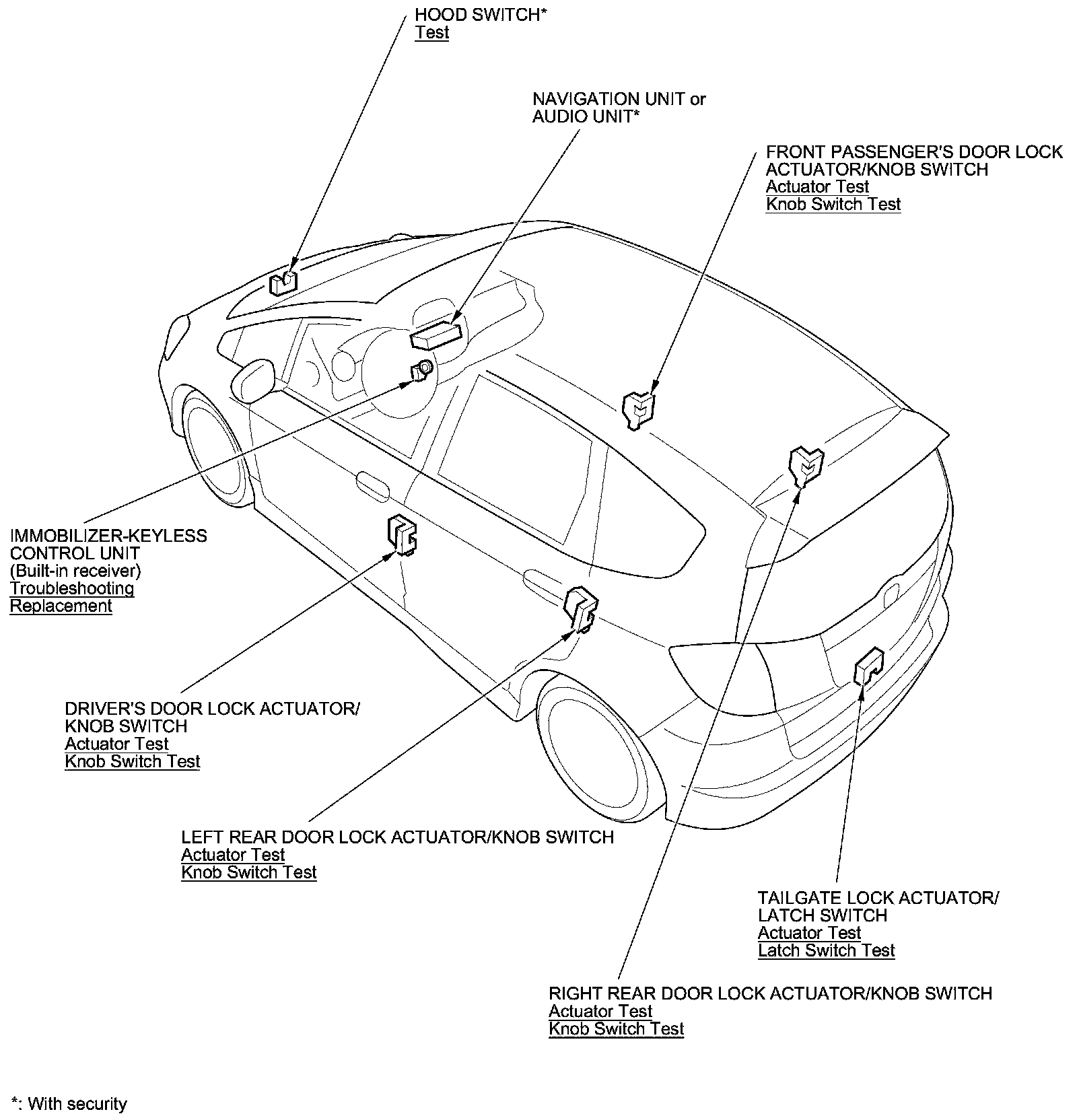 Keyless/Power Door Locks/Security System Component Location Index