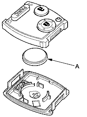 4. Replace the transmitter battery (A) with a new one, and try to lock and unlock the doors with the transmitter by pressing the lock or unlock button at least 10 times.