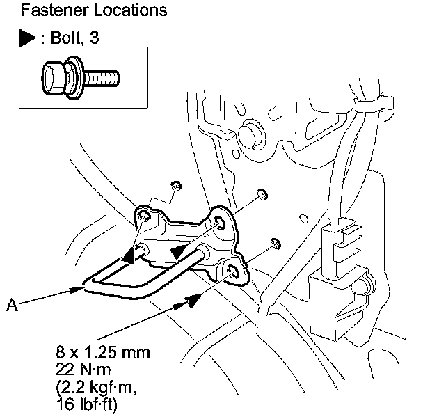 2. Remove the bolts, then remove the rear seat-back striker (A).