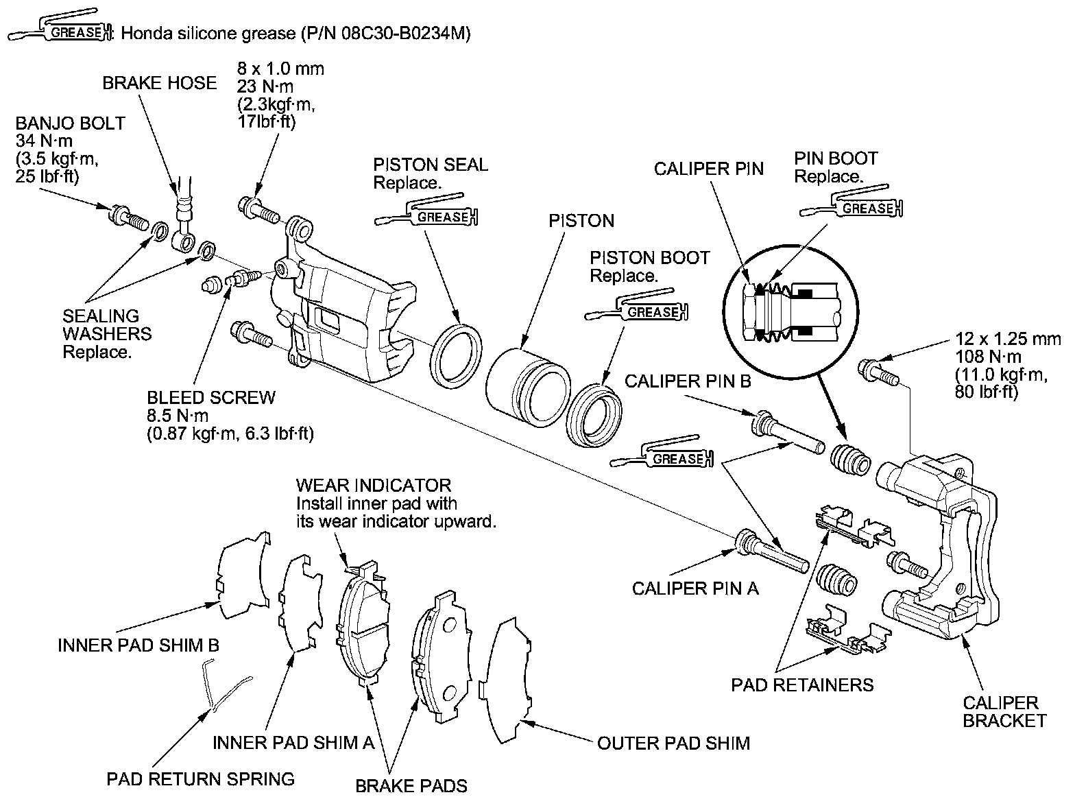 - Use recommended greases in the front caliper set.