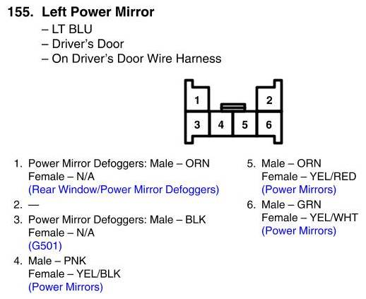 Left Power Mirror Connector View