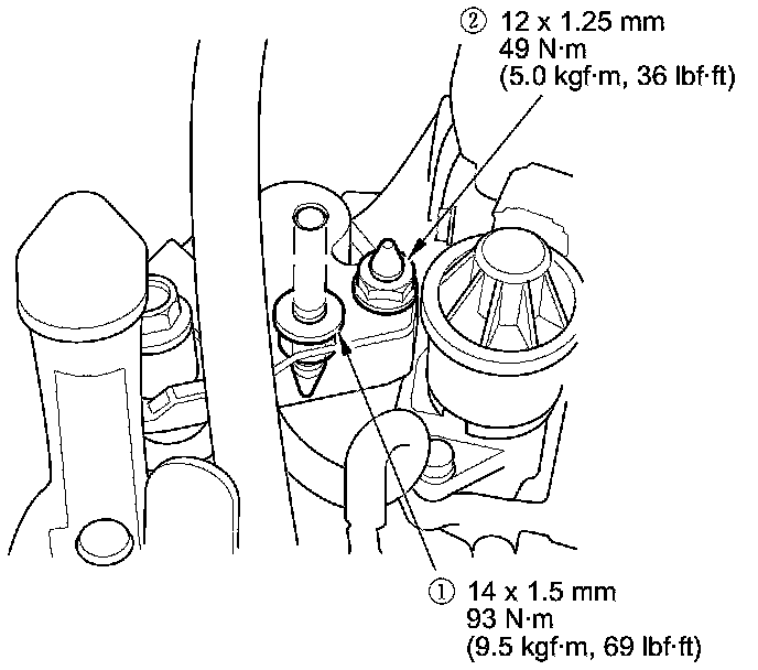 24. Tighten the torque rod mounting bolt and nut in the numbered sequence shown.