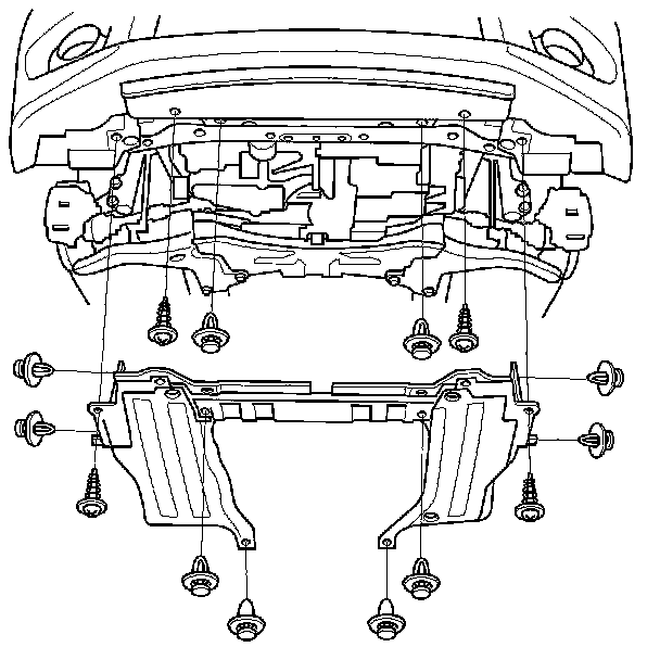 14. Tighten the front subframe mounting bolts in the numbered sequence shown.