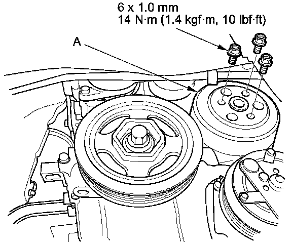 5. Remove the water pump pulley (A).