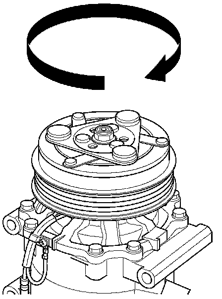 7. Inspect the friction surfaces and the A/C compressor shaft hub for excess oil. If excess oil is present, and it is not from the engine or power steering system, then the A/C compressor shaft seal is leaking. Replace the A/C compressor Service and Repair.
