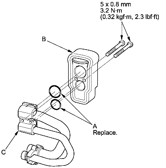 - Replace the O-rings with new ones at each fitting, and apply a thin coat of refrigerant oil before installing them. Be sure to use the correct O-rings for HFC-134a (R-134a) to avoid leakage.