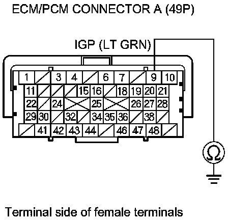 70. Check for continuity between ECM/PCM connector terminal A9 and body ground.