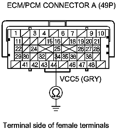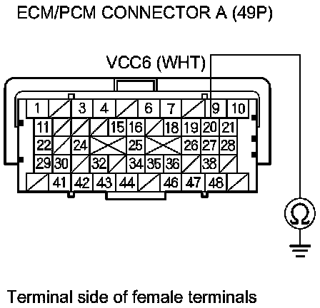 34. Check for continuity between ECM/PCM connector terminal A3 and DLC terminal No. 6.
