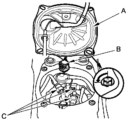 6. Disconnect the quick-connect fittings (C) from the fuel tank unit.