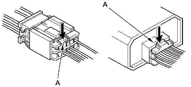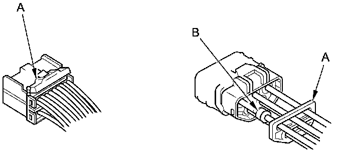 - Before connecting connectors, make sure the terminals (A) are in place and not bent.