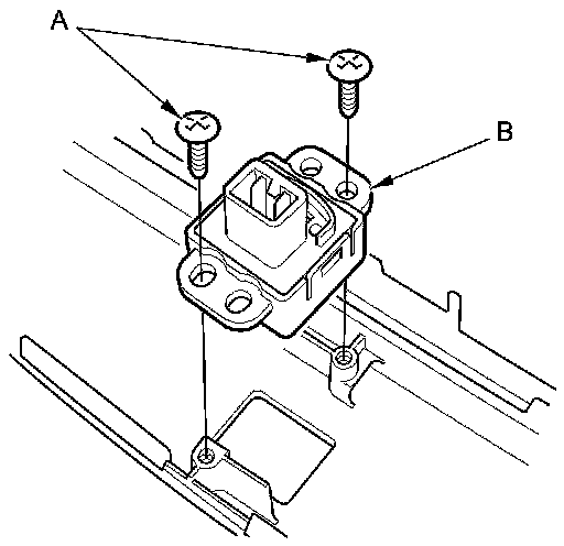 7. Remove the mounting screws (A) and push out the passenger's airbag cutoff indicator (B) from behind the center panel.