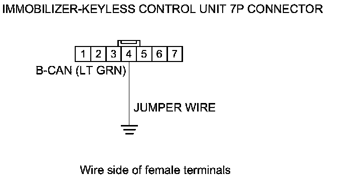 23. Connect immobilizer-keyless control unit 7P connector terminal No. 4 and body ground with a jumper wire.