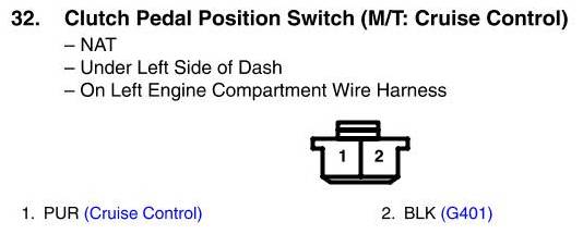 Clutch Pedal Position Switch Connector View (M/T: Cruise Control)