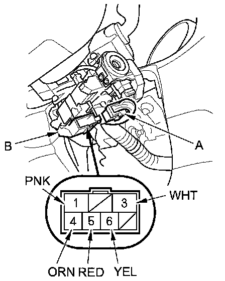 3. Disconnect the 7P connector (A) from the ignition switch (B).