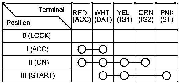 5. If the continuity is not as specified, replace the ignition switch Service and Repair.