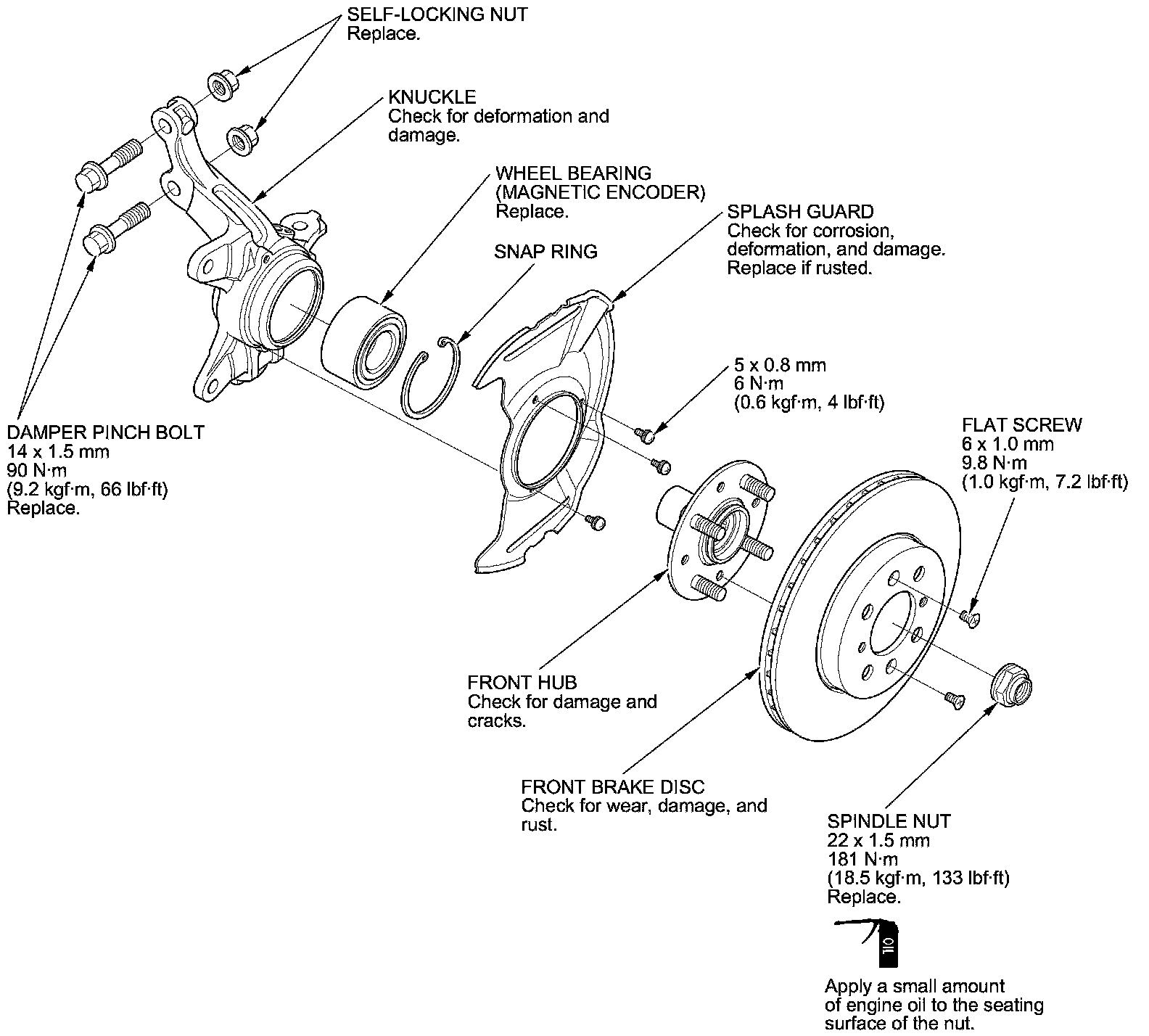- Use a new spindle nut on reassembly.