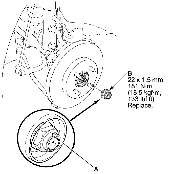 - Before installing the spindle nut, apply a small amount of engine oil to the seating surface of the nut. After tightening, use a drift to stake the spindle nut shoulder against the driveshaft.