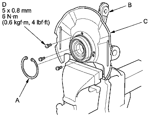 8. Install the splash guard (C), and tighten the screws (D) to the specified torque value.