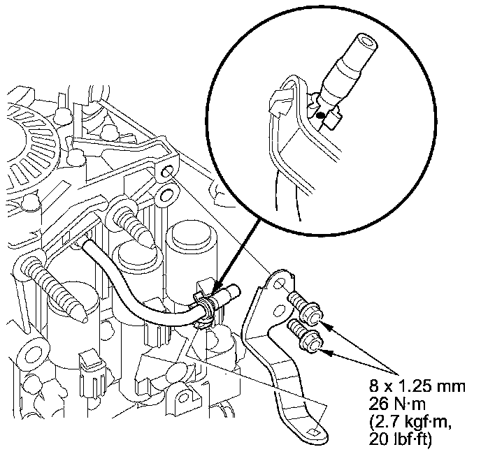 43. Secure the ATF outlet line with the bracket bolt.