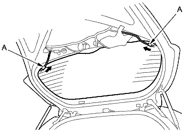 2. Remove rubber dams A and B from the edge of the rear window. If necessary, cut the rubber dam with a utility knife.