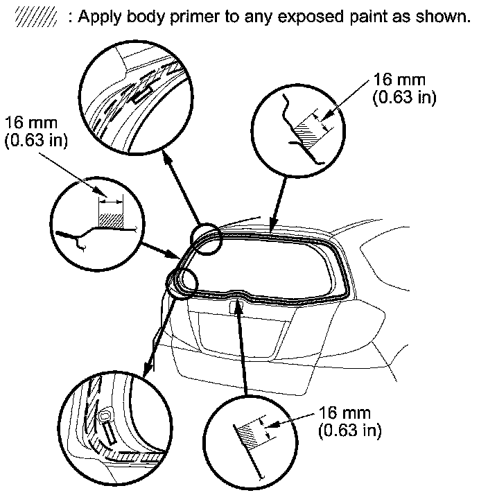 - Never touch the primed surfaces with your hands. If you do, the adhesive may not bond to the rear window properly, causing a leak after the rear window is installed.
