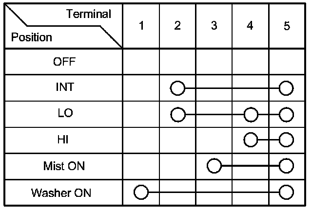 6. Check for continuity between the terminals in each switch position according to the table.