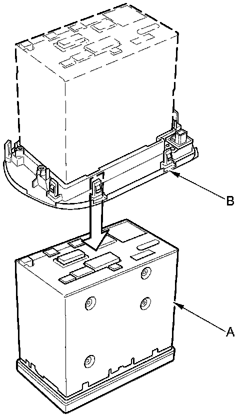7. Push out the audio-navigation unit (A) from behind the unit, taking care not to damage the connector (B).