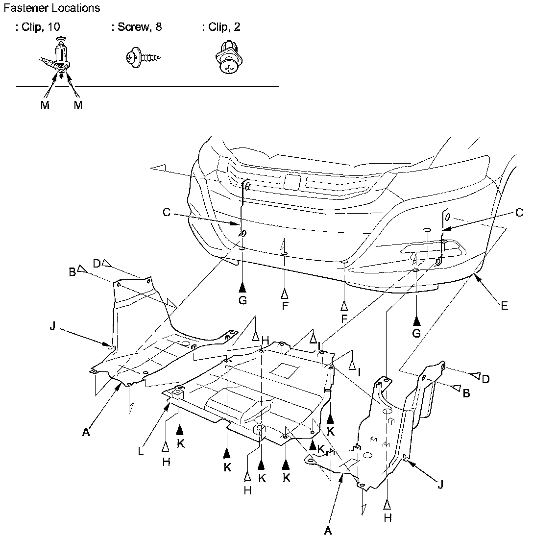 5. If necessary, remove the screws (K), then remove the engine under cover (L).
