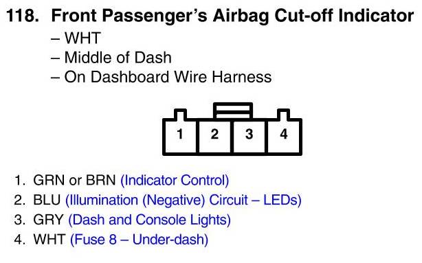 View 118 - Front Passenger's Airbag Cut-Off Indicator Connector View