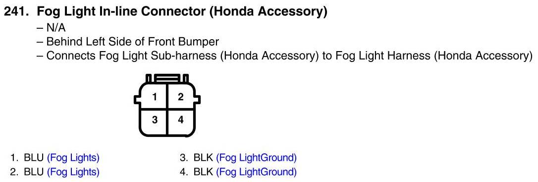 View 241 - Fog Light In-Line Connector Connector View (Honda Accessory)