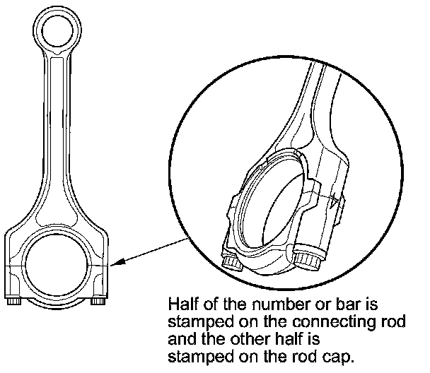Numbers or bars have been stamped on the side of each connecting rod as a code for the size of the big end. Use them, and the letters or bars stamped on the crank (codes for rod journal size), to choose the correct bearings. If the codes are indecipherable because of an accumulation of dirt and dust, do not scrub them with a wire brush or scraper. Clean them only with solvent or detergent.