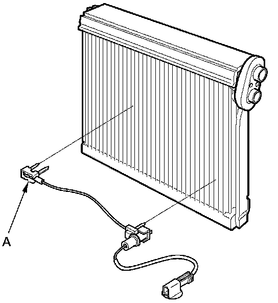 11. Pull out the evaporator temperature sensor (A) from the evaporator core.
