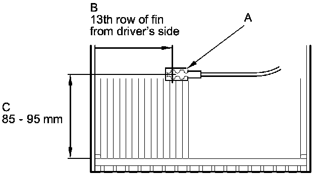 - When the evaporator temperature sensor (A) is installed into the new evaporator core, set the sensor into the factory-preset position (B, C).